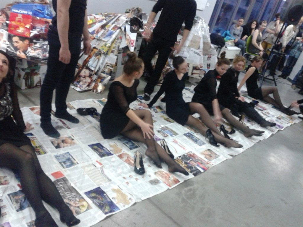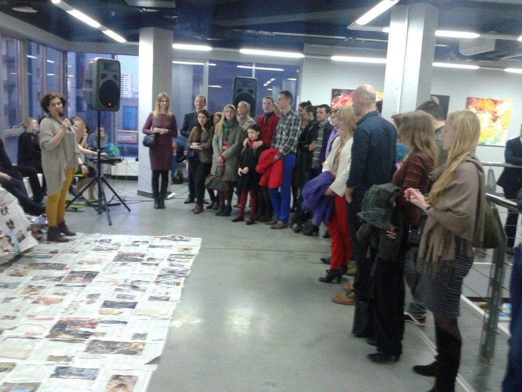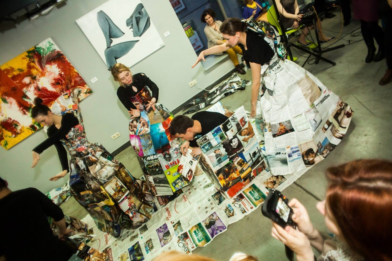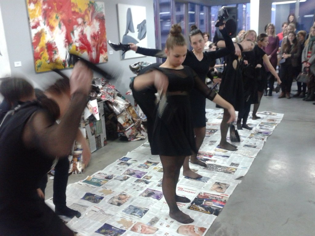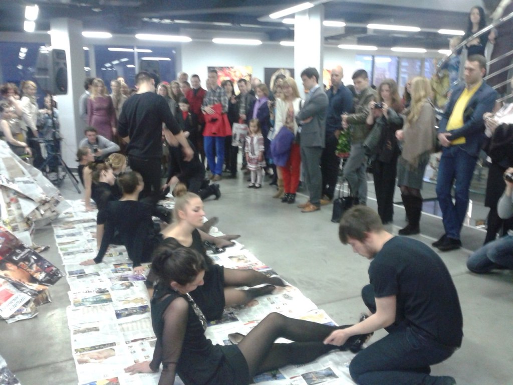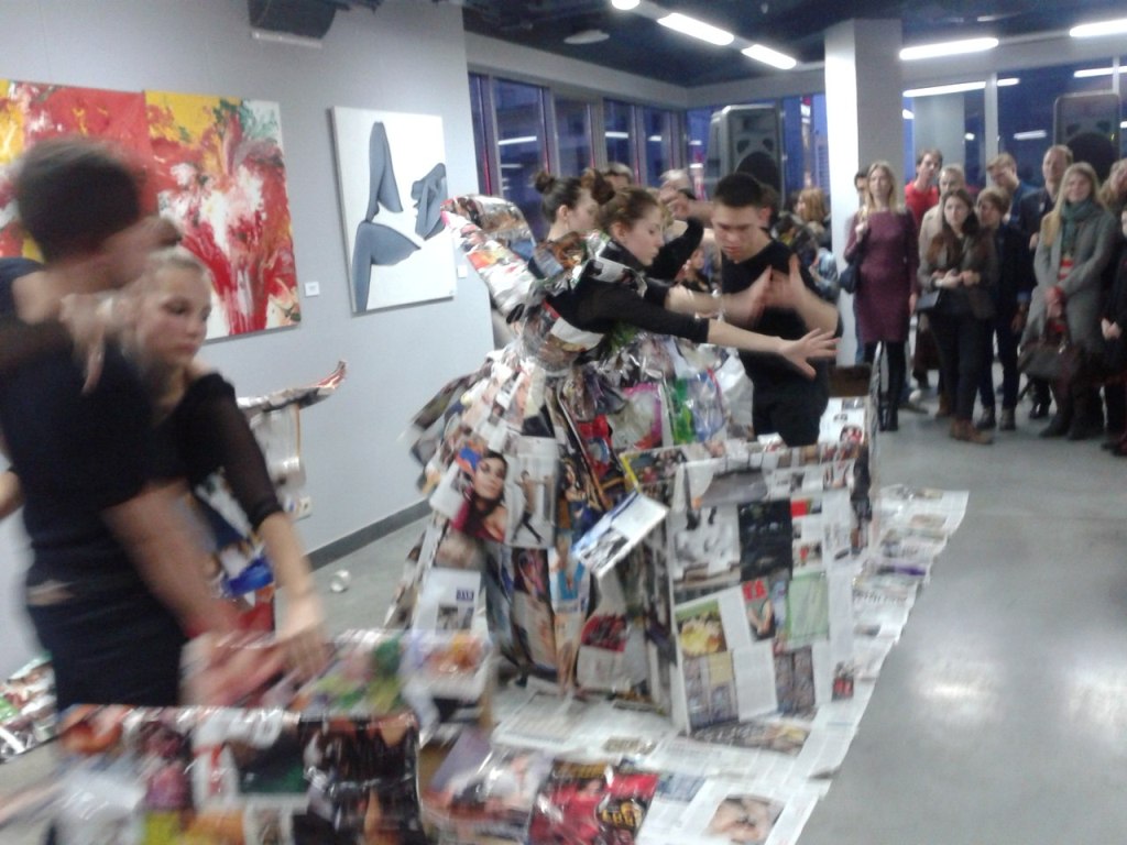 Фрагмент из Перформанса театра-студии Белая Ворона 17 апреля 2014 на открытии художественной выставки в арт-центре Я. Гретера, Киев