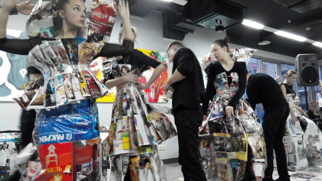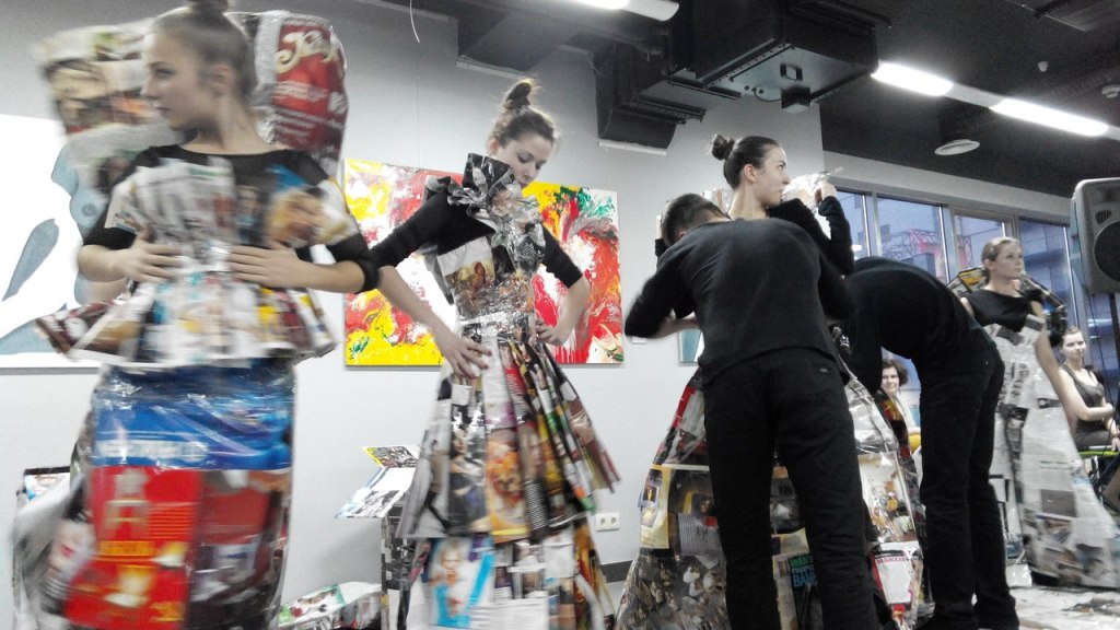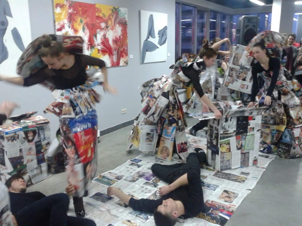 Фрагмент из Перформанса ФЕНИКС ТРАНСФОРМАЦИЯ ВОЗРОЖДЕНИЕ театра-студии Белая Ворона, участницы проекта “ТЕАТРАЛЬНЫЙ КЛАСТЕР” 17 апреля 2014 на открытии художественной выставки в арт-центре Я. Гретера, Киев